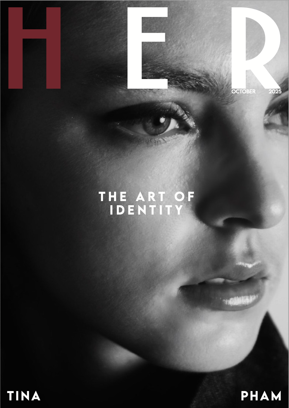 HER is a visual study of identity, exploring the versions of self we grow through, hide behind and slowly learn to understand. Through fashion and beauty, the project examines self love, societal pressure and the quiet tension between who we are and who we feel we should be. A palette of soft creams and browns creates a calm foundation, with a single red accent grounding the emotion. The work is minimal, intimate and honest, turning reflection into something cinematic. HER translates internal feelings into imagery that is intentional, personal and relatable to anyone exploring their own sense of identity.